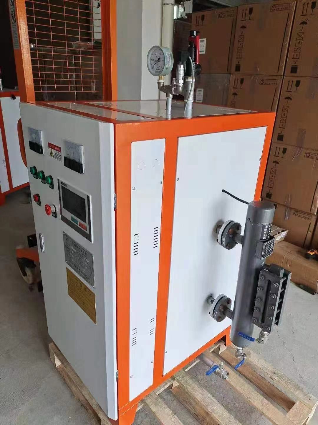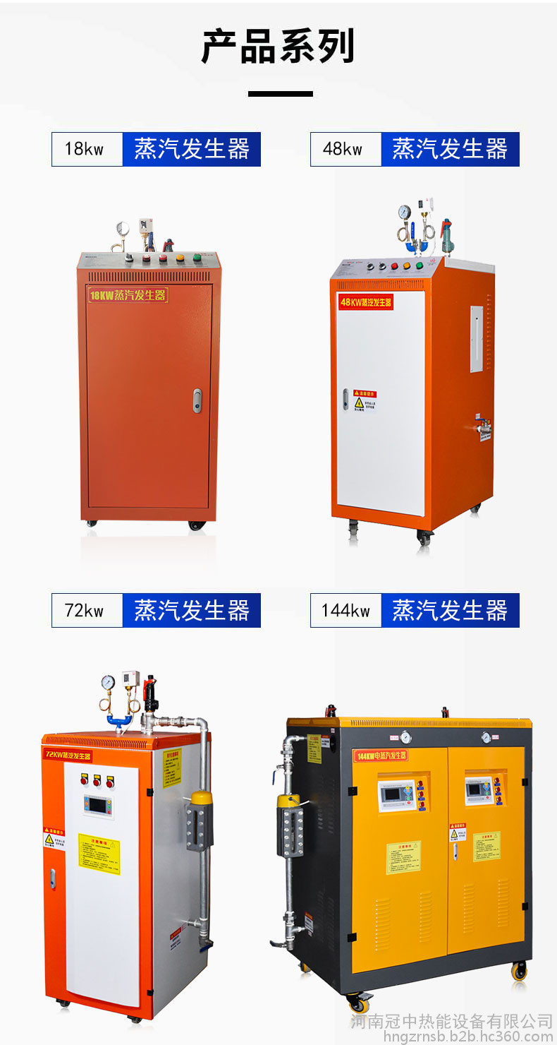 蒸汽发生器是利用燃料或其他能源的热能把水加热成为热水或蒸汽的机械设备。《特种设备安全监察条例》中对锅炉的范畴规定,锅炉内胆水容量>30L属于压力容器,国家特种设备。模块蒸汽发生器直流管路内部结构不需要储水,小型内胆式锅炉(蒸汽发生器)水容量大多数<30L,所以不归技术监督部门,节省了安装、使用费用。蒸汽发生器在水汽系统方面,给水在加热器中加热到一定温度,经给水管道进入省煤器,进一步加热以后送入锅筒,与锅水混合后沿下降管下行至水冷壁进口集箱。水在水冷壁管内吸收炉膛辐射热形成汽水混合物经上升管到达锅筒中,由汽水分离装置使水、汽分离。蒸汽发生器的使用注意事项有哪些:1、请勿随意调整压力控制器;2、为了保证用户的安全,必须在进入线路前安装泄漏断路器;套管应牢固接地;3、使用机器时,每天至少两次(等效压力计0.1MPa,打开底排水阀,排放蒸汽等异物);4、水质差时,使用软水。软水分配器根据日常工作时间确定补充工业盐的时间,这是基于盐箱中的固定盐;5、在启动前几天或启动后用螺丝刀拆卸泵扇,以防止汽车燃烧;泵内的空气;6、修理或更换部件时,一定要关闭电源,排水蒸汽,不要充气或充气;7、每两个月手动移动保护阀,防止生锈和。蒸汽发生器的优势有哪些:1、全自动控制,无需锅炉工人;2、,无需报备;3、方便:蒸汽发生器可连续或定期工作,无责任。操作人员一般只需按“打开”键即可启动,按“关闭”键即可关闭,非常方便;4、 安全:蒸汽发生器水容量小于30L,不会发生爆炸。蒸汽发生器使用注意事项:1、严禁蒸汽发生器在无水的情况下启动水泵(水泵不能空转);2、蒸汽发生器用水应是无腐蚀性、无杂质的清洁软水;3、蒸汽发生器每天工作完毕以后应将蒸汽罐内存水放尽,然后切断总电源——拧开排汽阀——开启排污阀;4、严禁水、汽喷溅到电器元件上;5、使用设备过程中必须由专人负责,随时注意加热筒内的蒸汽压力,不得*过“高”允许压力;6、严禁在具有蒸汽压力或高温下检修,进行检修或故障处理时,必须切断电源、卸压降温以后进行,以免发生意外;7、压力表、安全阀和压力控制器等检测仪表,应每年交给单位校验一次。河南省热丰锅炉有限公司凭着“团结、务实、敬业、奉献”的企业精神,经过全体员工的努力拼搏和积开拓。以保证公司在可持续发展战略思想指引下得到长期、稳定、高速发展。